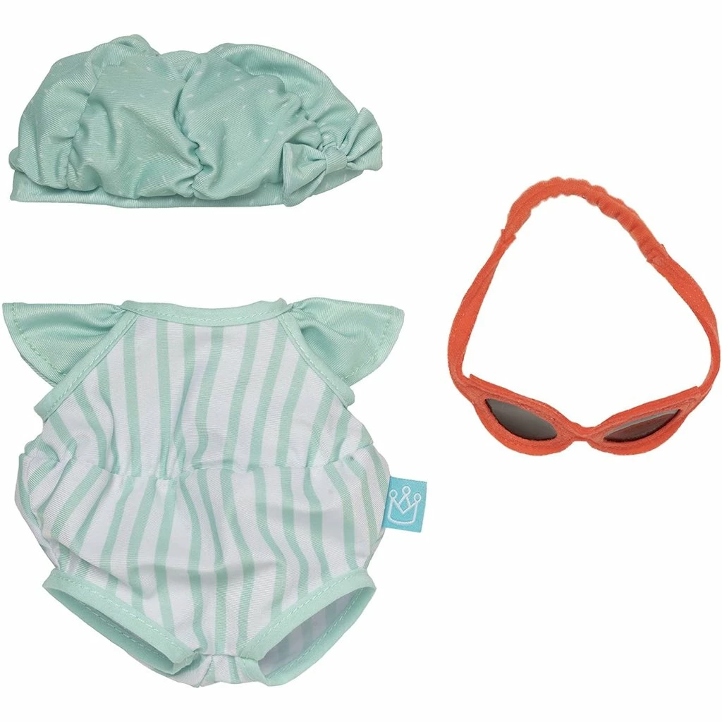 Pool Party – This 3 piece swimming outfit includes suit, goggles and swim cap. A great accessory to add to any child’s collection of award winning Baby Stella dolls and accessories. Swim cap fits dolls with tuft hairstyle best.