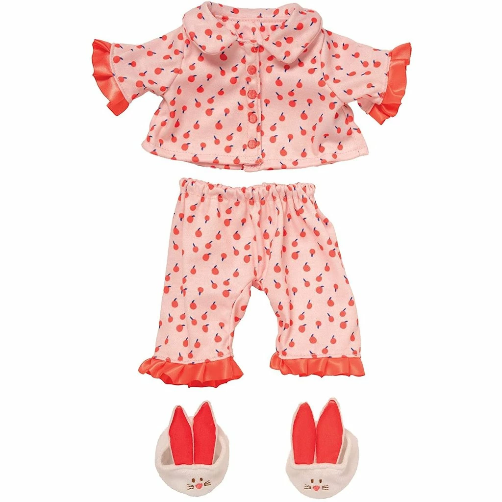 Cherry Dream – The Cherry Dream 3-piece pajama set from the Baby Stella collection features a matching top and bottom along with bunny ear slippers. This doll clothing set will fit all 15″ Baby Stella dolls, with closures for little hands to easily change.ย