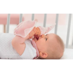 - Her sweet little vinyl face is so realistic that babies feel reassured every time they look at it.