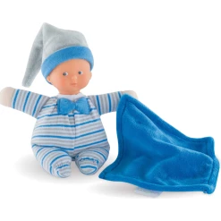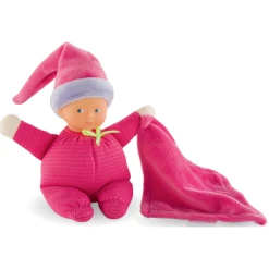 Minirêve is a mini 6-inch soft baby doll for the very young that is easy to take along everywhere and the perfect size to slip into a diaper bag or even a coat pocket. Its reassuring, realistic vinyl face is delicately scented with vanilla, a Corolle signature, and there are multiple grip points for tiny fingers to grasp and hold. A plus for parents: There is a sewn-in label with space for baby’s name or a parent’s telephone number, handy if the doll is ever lost. Another plus: Minirêve is machine washable, gentle cycle please. mon doudou Corolle: Friends forever.
