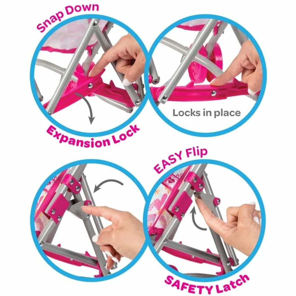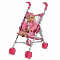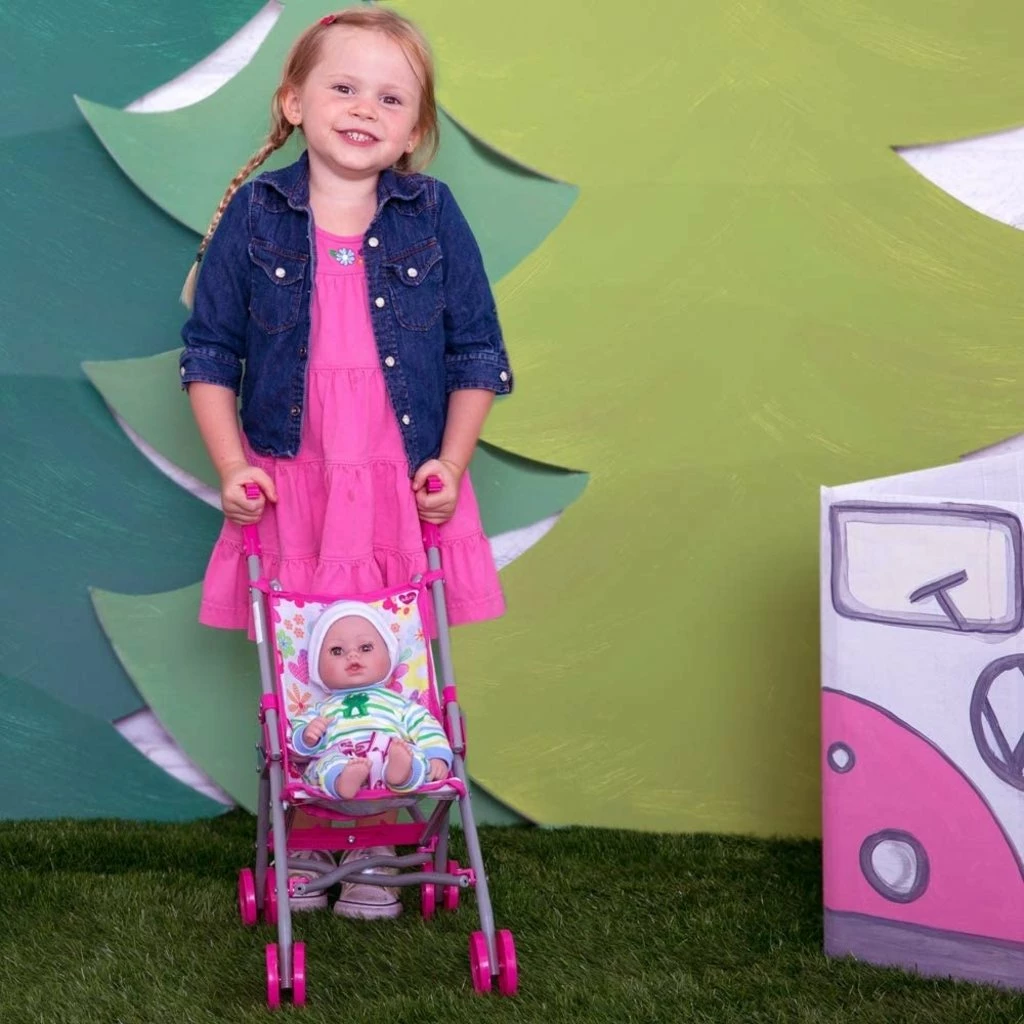 More Love. More Joy. More hours of playtime fun! ADORA’s Small Umbrella Stroller is made to fit the 13-inch PlayTime™ and BathTime™ Babies but can fit most dolls, stuffed animals and plush dolls up to 18 inches in length. It features ADORA’s exclusive bright and fun floral print and has an ADORA printed belt to keep your baby dolls safe and sound. Made with high-quality materials, this lightweight doll stroller makes it easy to tote around all of your little one’s favorite ADORA dolls and toys. It even comes assembled and folds up for easy storage! Imagine all the wonderful memories your little one will make while bringing their favorite ADORA toys everywhere they go! Perfect for little parents that are always on-the-go, ADORA’s Small Umbrella Stroller is a must-have baby doll accessory!