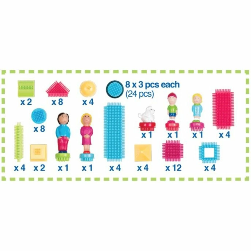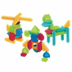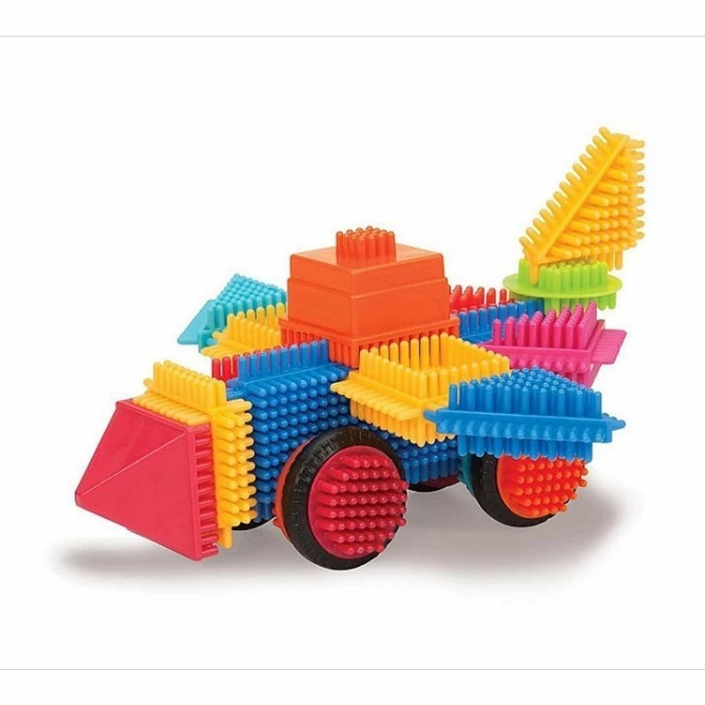- Large pieces, bright colors, fun shapes and easy construction stimulate young minds and build motor skillsโBristle Blocks are the perfect first building blocks.