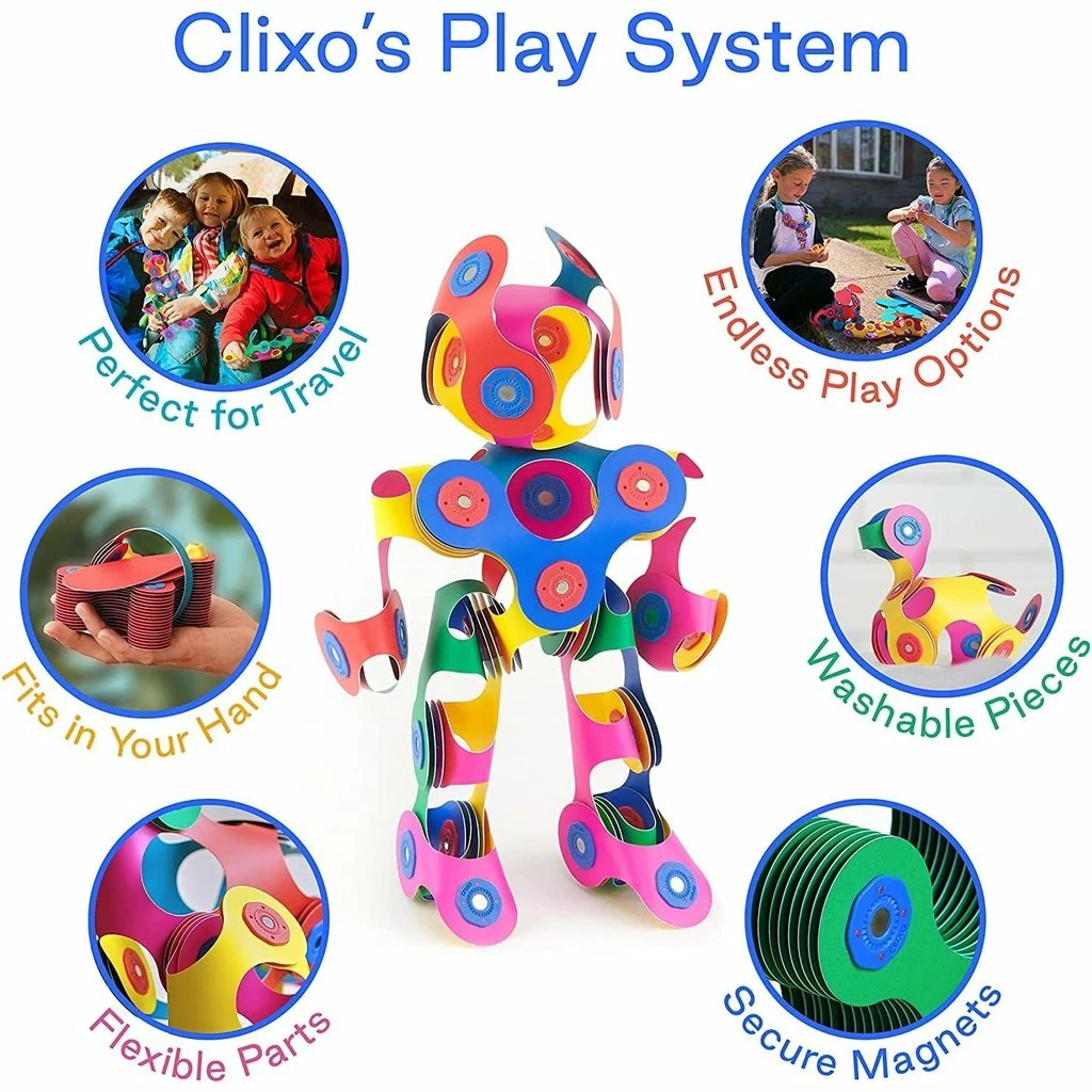 - With Clixoยฎ, flexible, 2D shapes turn into an endless variety of 3D creations for fun, free-form exploration and STEAM building skills!