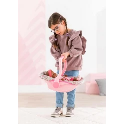Take a stroll through the park or downtown with your baby doll and accessories packed in this neat Floral Baby Doll Carrier. Ideal for young make-believe moms on the go, this Floral Baby Doll Carrier fits up to a 17-inch baby doll. Lightweight yet sturdy and styled like those for real babies, it features security straps and a handle that adjusts to three different positions. It’s part of the Mon Grand Poupon Corolleยฎ Collection of dolls, fashions and accessories to help little ones three years and up take care of their baby doll the way their parents take care of them.