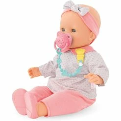 - Interactive Pacifier from Corolle® clips onto a 14-inch baby doll and makes 15 different sounds.