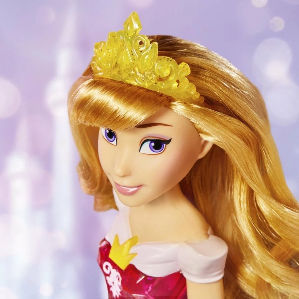 - AURORA: In the Disney Sleeping Beauty movie, AURORA’s grace, kindness and positive nature enchant all she meets. Inspired by her animated character, this set includes a fashion doll with long blonde hair, removable skirt and shoes in her signature pink color, and tiara.