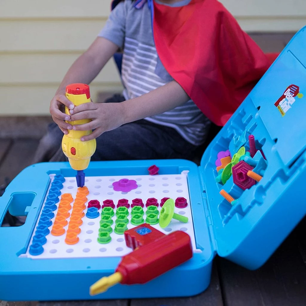 ย Do even more with Design & Drill! This giant deluxe edition of our popular Design & Drill Activity Center offers oodles of creative play possibilities for busy hands. Builds fine motor skills as children use tools and bolts to explore counting, colors, and shapes.