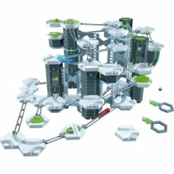 With 149 elements that include unique components, this set offers everything you need to begin building your own vertical action-packed track systems. Build with walls, pillars and balconies that can be attached together to form three-dimensional structures. The elements can be integrated seamlessly with existing GraviTrax sets, allowing you to create more dynamic marble runs. The pillars have special notches to connect them with the transparent walls and create more intricate paths for the marbles. Suspend your tracks in air with the balconies.