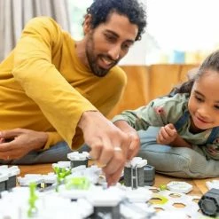 - Encourages fine motor skills, spatial reasoning, logical thinking, planning, problem-solving and experimentation.
