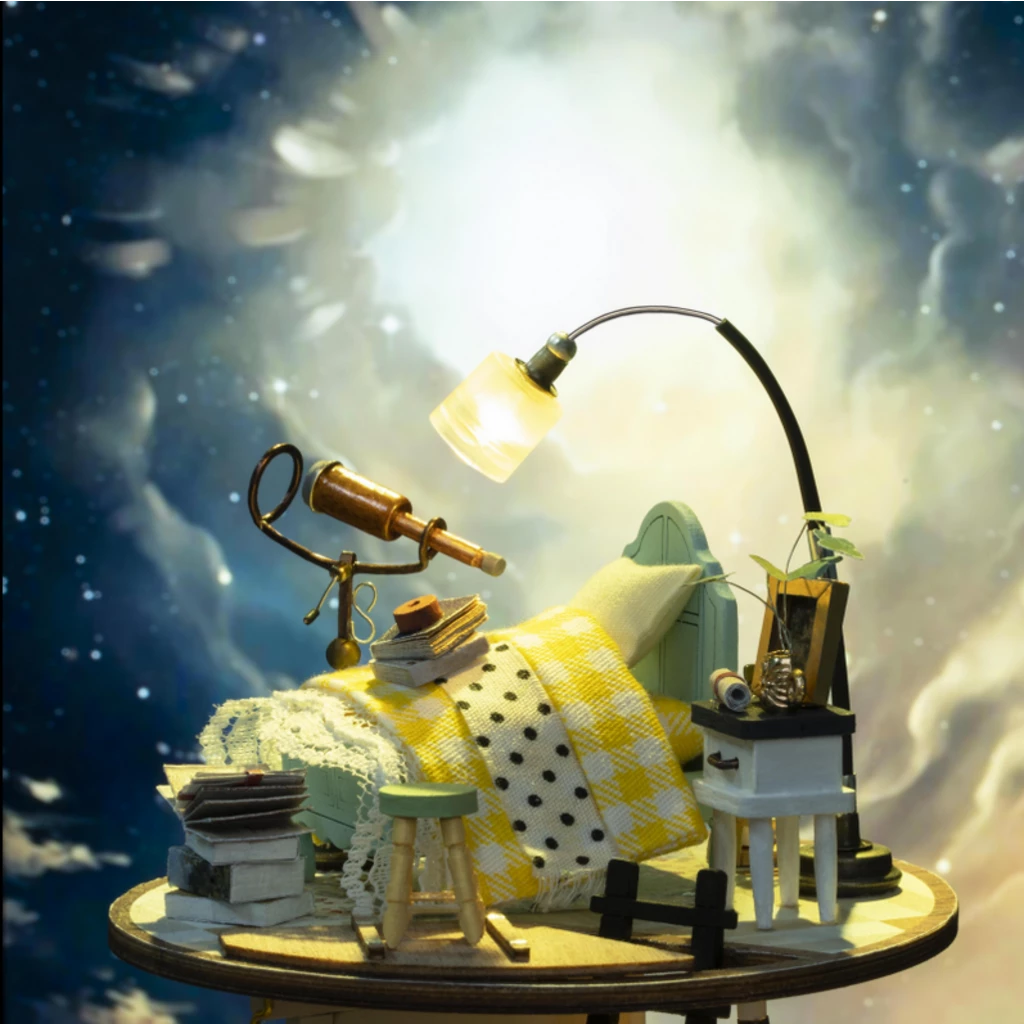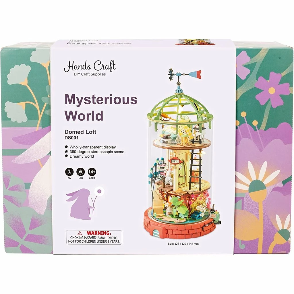 The Domed Loft is a unique and cozy wooden loft that is perfect for loners. This DIY miniature house kit contains all the building pieces, necessary tools and a clear acrylic glass cover for excellent display effect.
