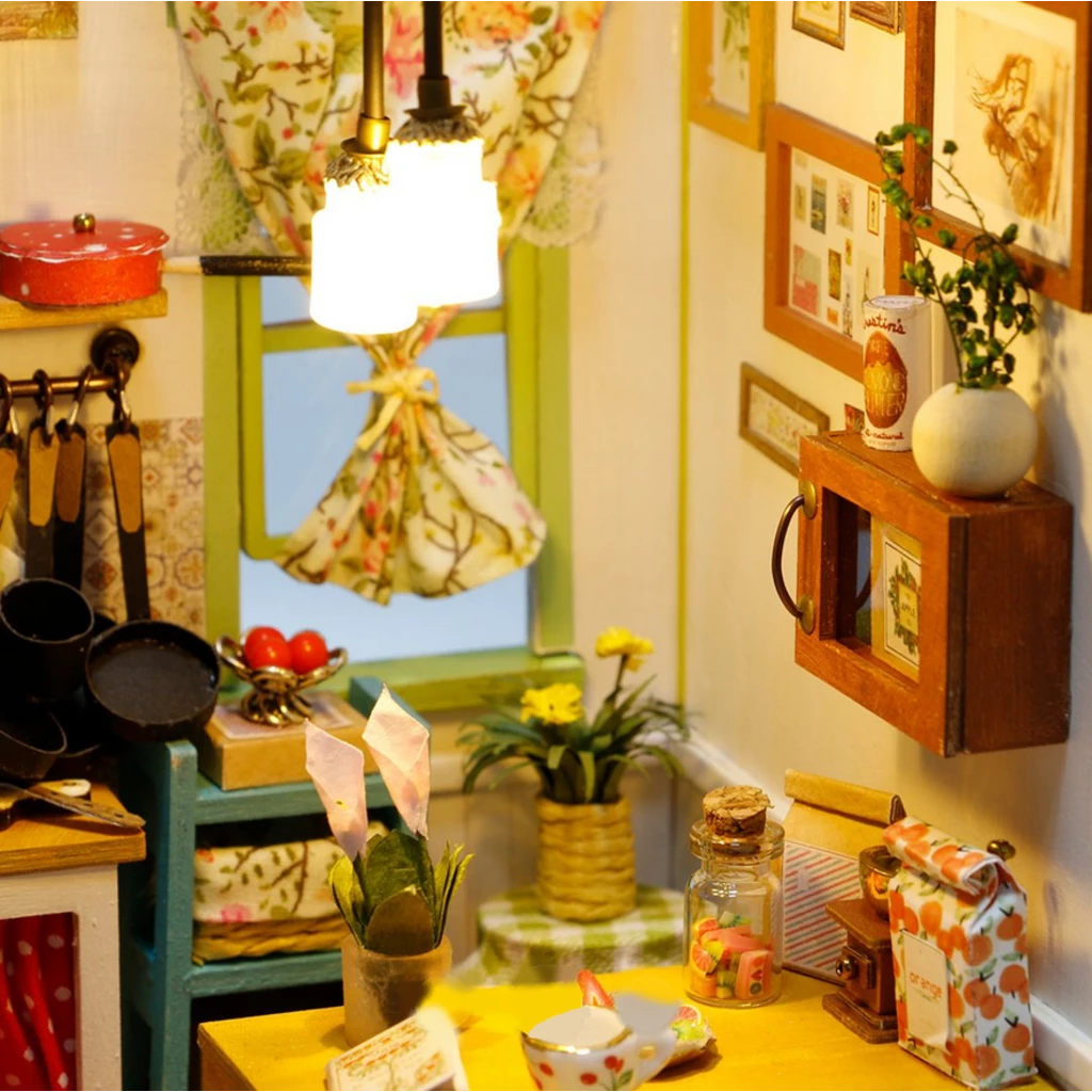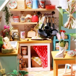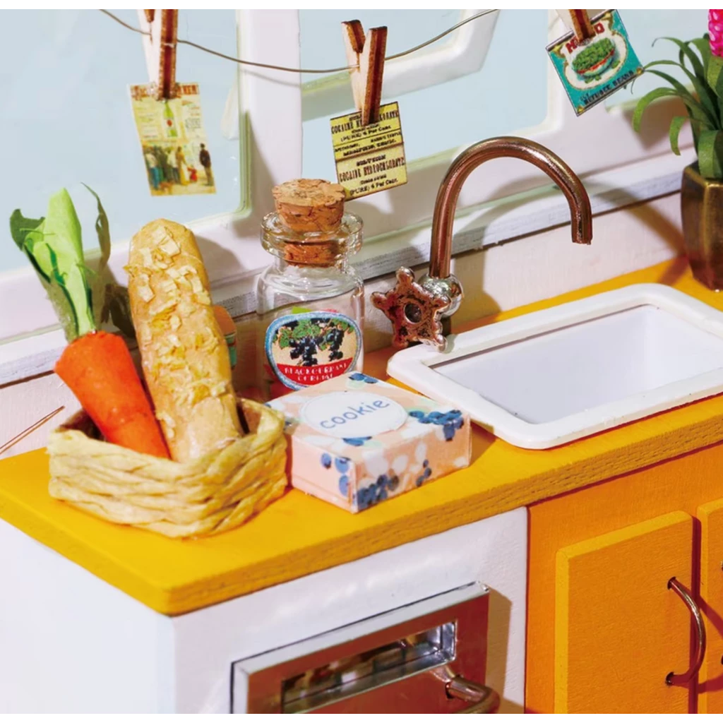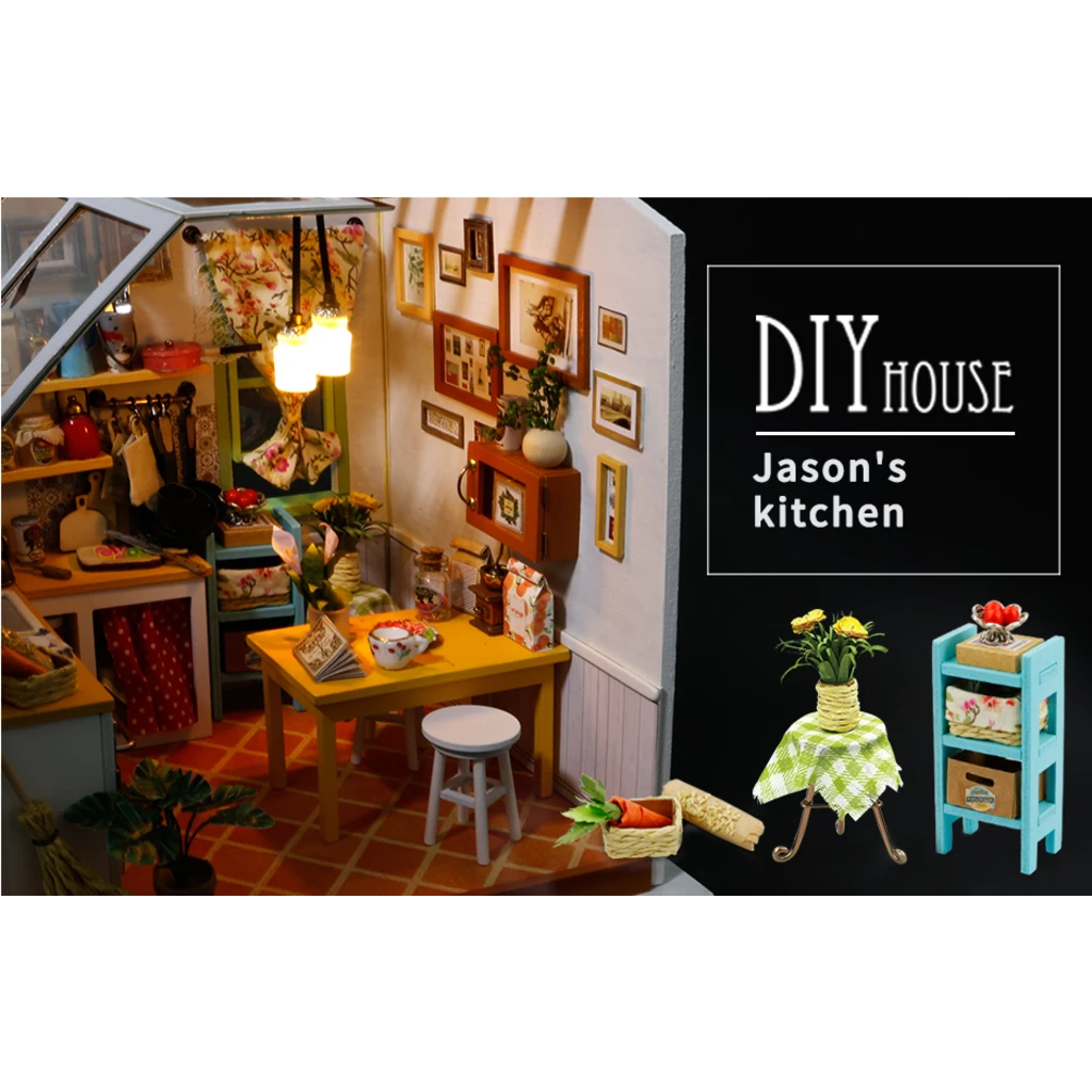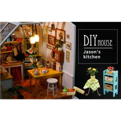 Jasonโs Kitchen is inspired by the most whimsical and cozy cottage kitchen. Immensely detailed and impressively designed, the end result is a gorgeous kitchen that you may also use as an exquisite dรฉcor piece.ย It is a replica of typical family kitchen. There are realistic cookware details like sink, pan, bread, pot, kettles and cabinetโso many vivid mini furnitures to build and craft. Turn on the light, it will show you the taste of a sweet home. As a foodie, the happiest thing in the world is to stay in the kitchen, watching flavorful dishes shown in the pot and spoon. Some people are so busy that they have never cooked a meal in the kitchen. Jason hopes everyone can feel the warmth from their own kitchen.ย