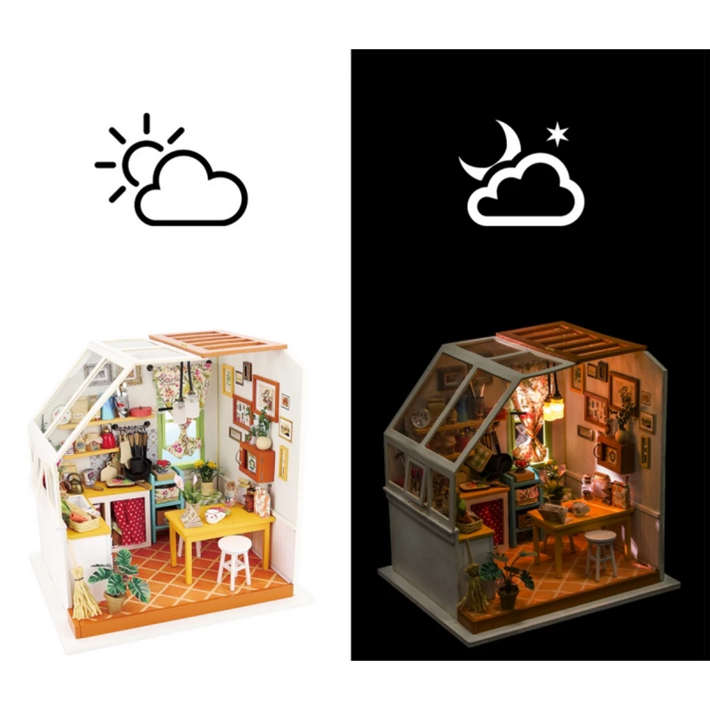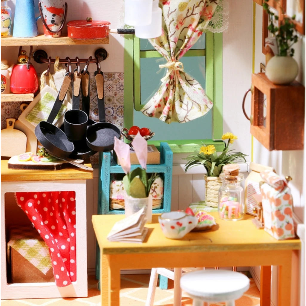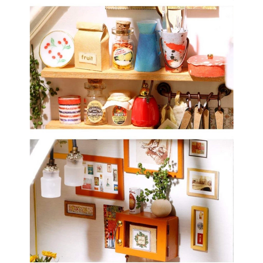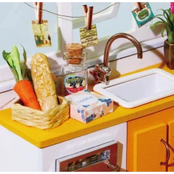 Jasonโs Kitchen is inspired by the most whimsical and cozy cottage kitchen. Immensely detailed and impressively designed, the end result is a gorgeous kitchen that you may also use as an exquisite dรฉcor piece.ย It is a replica of typical family kitchen. There are realistic cookware details like sink, pan, bread, pot, kettles and cabinetโso many vivid mini furnitures to build and craft. Turn on the light, it will show you the taste of a sweet home. As a foodie, the happiest thing in the world is to stay in the kitchen, watching flavorful dishes shown in the pot and spoon. Some people are so busy that they have never cooked a meal in the kitchen. Jason hopes everyone can feel the warmth from their own kitchen.ย