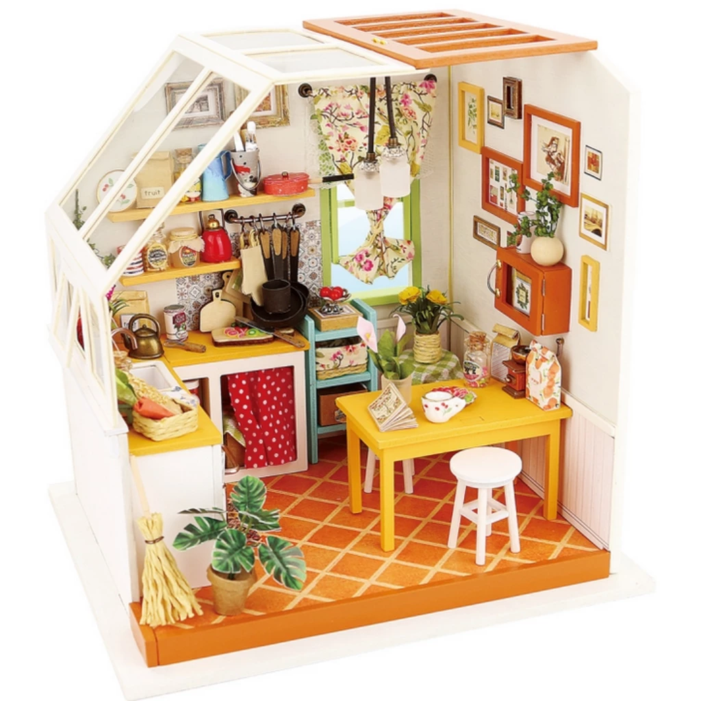 - Complete miniature dollhouse kit โ You get stunning realism with magnificent detail in this DIY project for teens and adults. This charming scene is called Jason’s Kitchen from Hands Craftยฎ. Ideal for hours of fun and relaxing creativity to while away idle times or relax after a long day.
