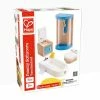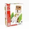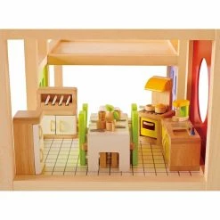 Time to get cookin’ and really get down to the business of playing with the Hape Kitchen set! An essential play set for any dollhouse, this Kitchen set features everything kids will need to spend the day cooking, cleaning and preparing all the meals their dollhouse family would need. This set includes a refrigerator with white doors, a stove with hood, a sink/counter combination with yellow cabinets, and a few pots and pans and a coffee maker. Get ready to heat up imaginative play with this kitchen!