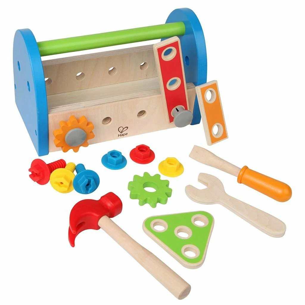 - Set includesΒ tool box and 16 accessories: hammer, screwdriver, wrench, 2 gears, 4 bolts, 4 nuts, 1 2-hole plank, 1 3-hole plank, and 1 triangle plank.