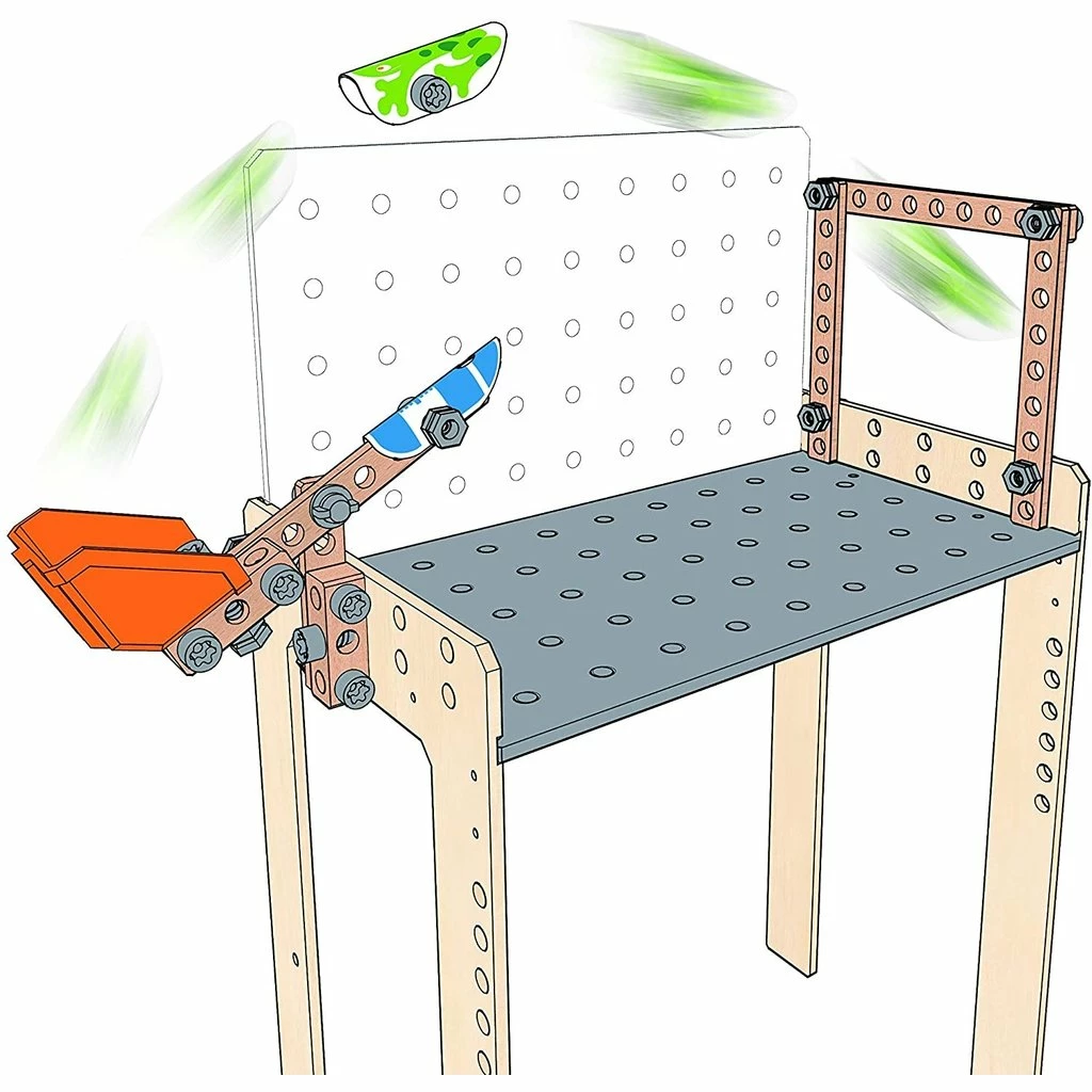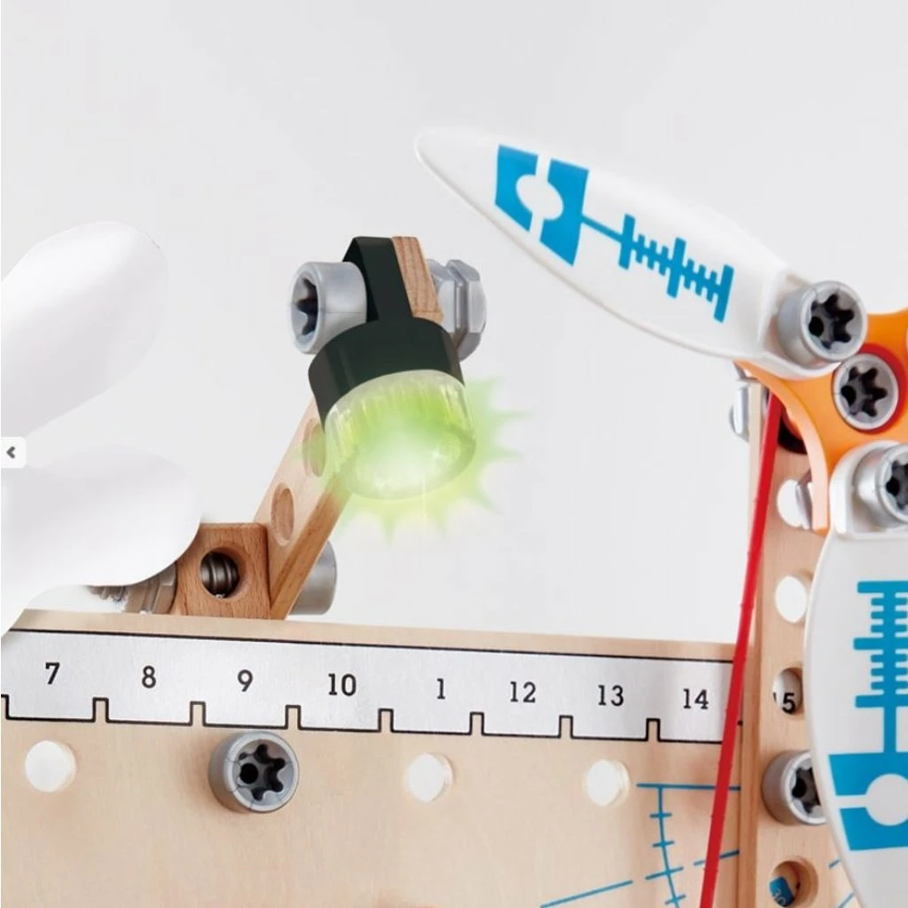Hape’s 79 Piece Junior Inventor Deluxe Scientific Workbench contains everything children need to conduct over 15 experiments, and demonstrate key scientific principles! Your little one can build devices like a Digger, Zoetrope, Gravity Vehicle, Rotating Light, Wind Maker and many more. Let the creative experiments stimulate your kid’s curiosity and get to know the secrets of physics. How can the frog cross between tables? Why is there a moving picture through the zoetrope? Let the creative experiments stimulate your child’s curiosity.