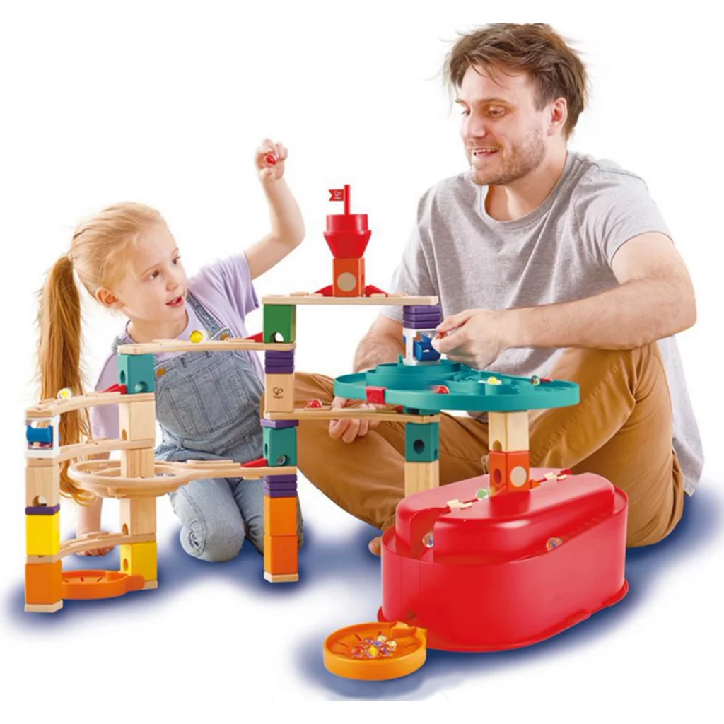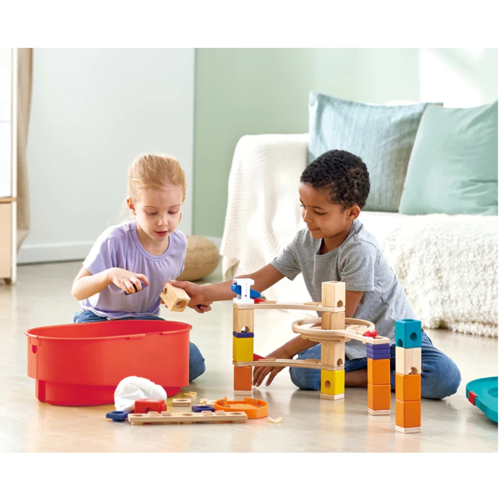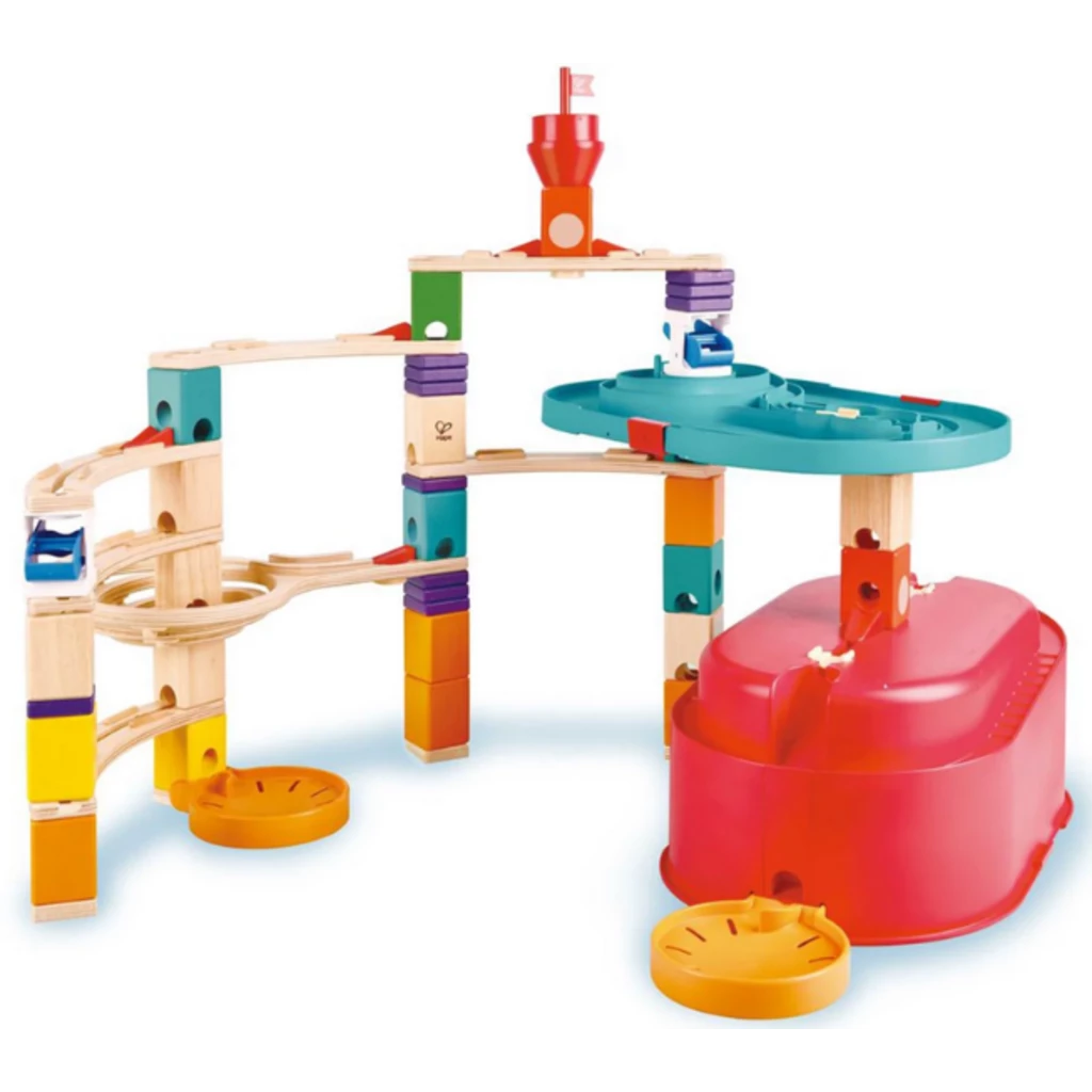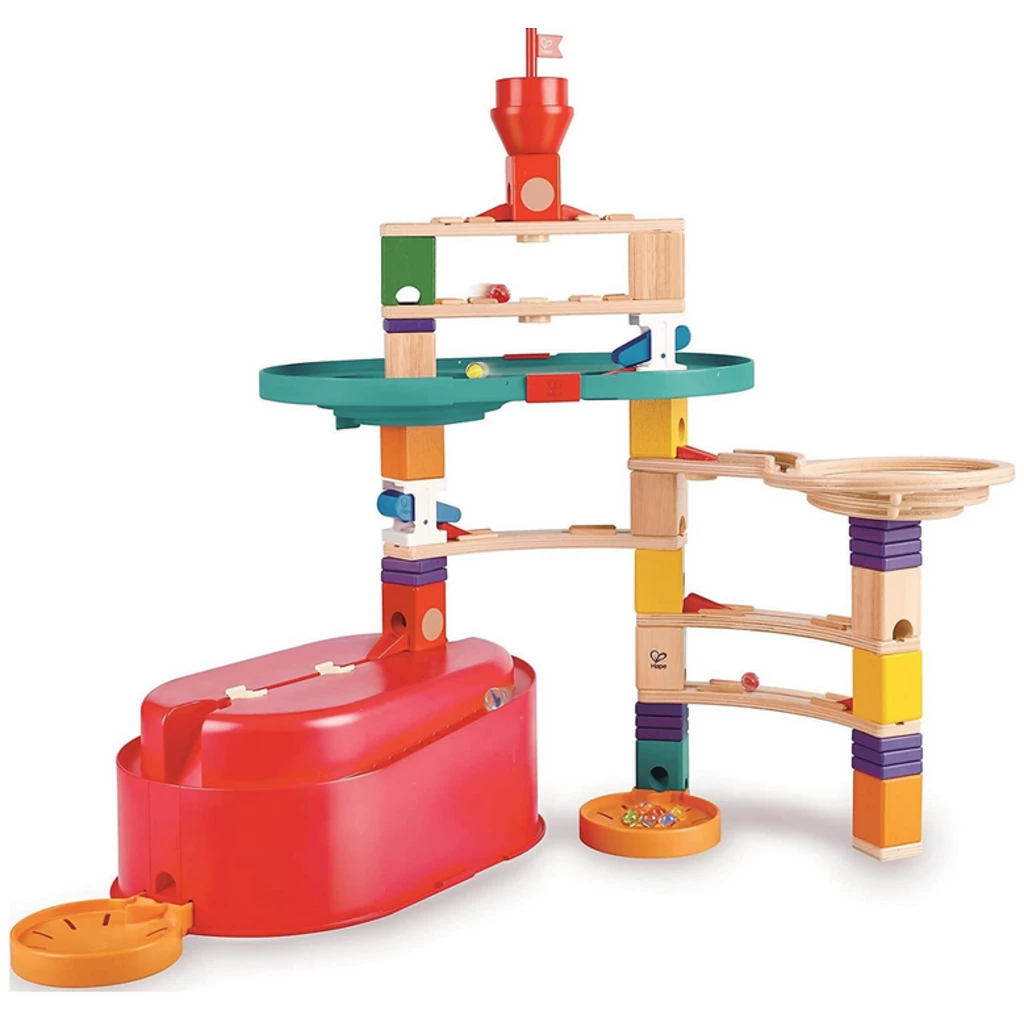 - Compatible with other HAPE Quadrilla marble run sets (available separately).