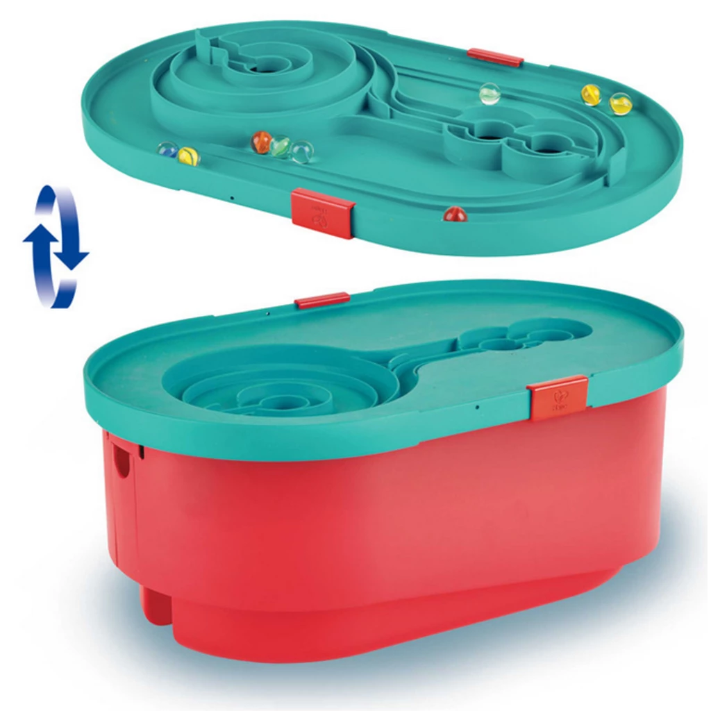 Ready, Set, Go! Compete in a marble race with this fantastic DIY track! Build the track yourself, then send the marbles rolling down through all the twists, turns, holes and ramps. Even the storage bucket becomes part of the track! The bucket lid is reversible and can be used separately as its own little marble track.