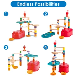 - The unique marble run system is similar to coding. It provides a fun way of developing kid’s understanding of core STEAM principles as well as encouraging spatial thinking and problem-solving skills.