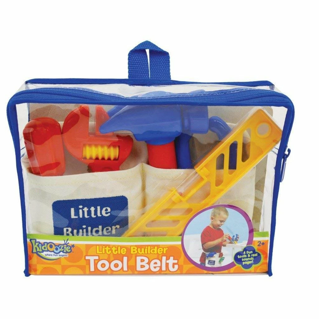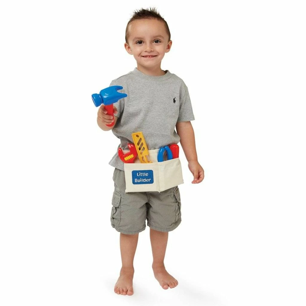 My First Tool Belt is perfect for any little builder! A great introduction to tools, these lightweight plastic components inspire much imaginative play. The sturdy canvas tool belt has 2 easy-to-use pockets to hold all your tools. Set includes a hammer, adjustable wrench, pliers, screwdriver with two bits, and level. Besides the thrill of make believe, your child will be encouraged to learn new vocabulary and learn a bit about different kinds of tools. Which brightly colored item will be your child’s favorite?ย