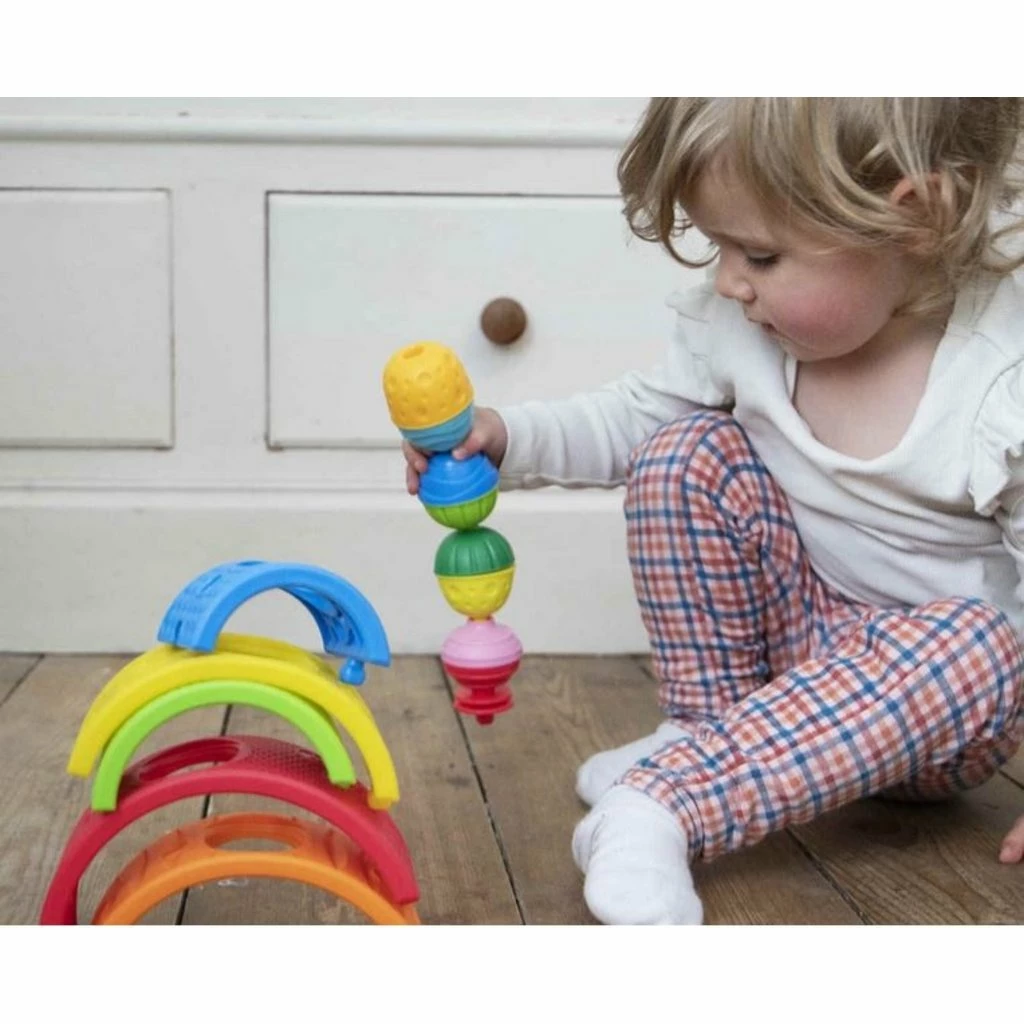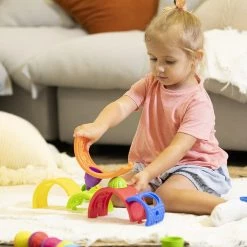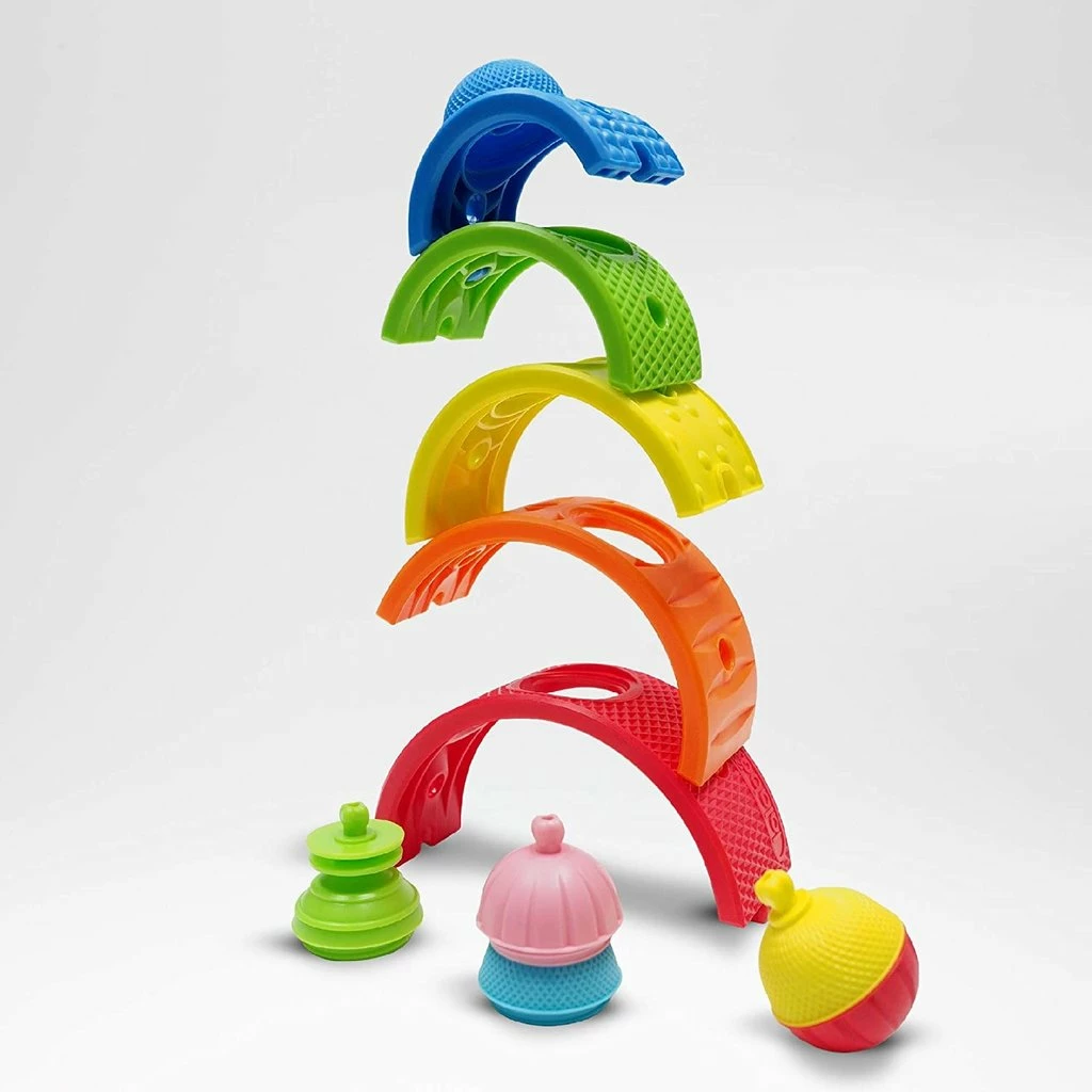- Set contains 5 rainbow-colored, textured arches and 4 colorful and textured educational beads to promote sensory discovery and the development of fine motor skills in children aged 1 to 4 years.