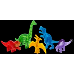 - Five magnetic dinosaur all-stars, including: Pteranodon (yellow), T-Rex (blue), Stegosaurus (purple), Triceratops (red) and Brachiosaurus (green).