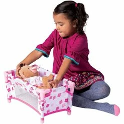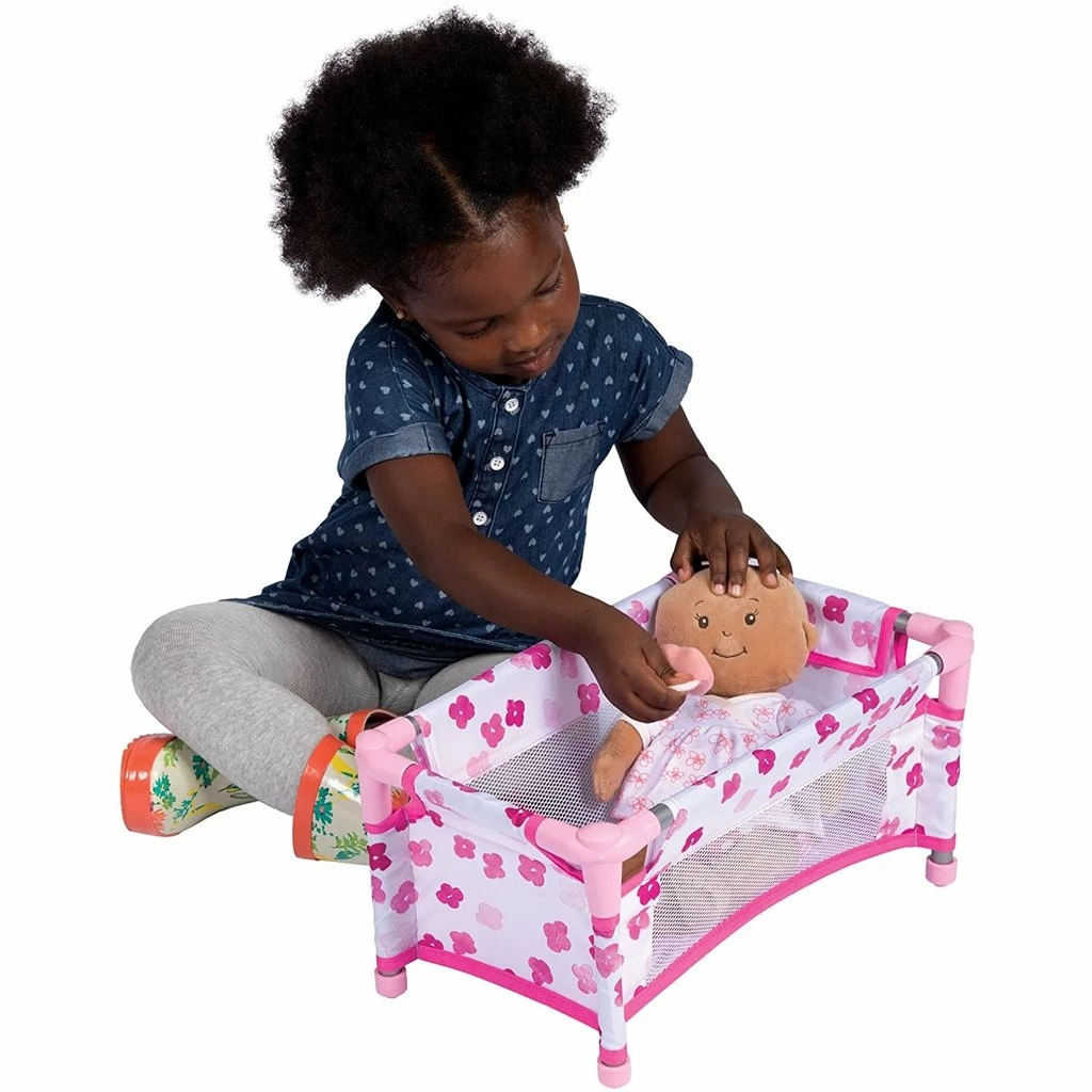 - Pack and play crib will fit 12 and 15 inch dolls and includes a zippered carrying case