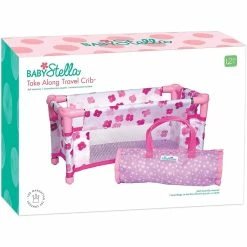 This Baby Stella Take Along Travel Crib is perfect for little ones to put their Baby Stella Doll or Wee Baby Stella to bed. This fabric crib has metal poles and plastic joints that fit together for easy assembly. Made of a sturdy, nylon oxford material, this pack and play also includes a zippered carrying case to pack it all up so little ones can take it with them wherever they go! Adult assembly required.