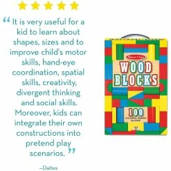 This favorite collection of 100 Wooden Blocks comes in four colors and nine shapes. Young builders will appreciate the quality of Melissa & Dougs wooden blocks, and delight in stacking, building, and knocking them down in countless colorful combinations.ย Toys become tools of learning as our children gain invaluable practice with fine motor skills and dexterity, color and shape recognition, and pre-math skills.
