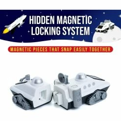 - Children can match the 9 magnetic pieces to build realistic space vehicles… or mix them up to invent their very own! The set even includes wheeled pieces—for free-rolling fun!
