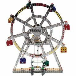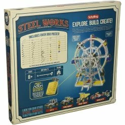 Build this magnificent centerpiece to the amusement park. This impressive Steel Works Ferris Wheel stands almost 14 inches tall, has a spinning mechanical movement, and plays a classic theme park song. With over 954 pieces you have everything you need to build this incredible, working toy. The Ferris Wheel comes with all the tools you need and a detailed, step-by-step instruction booklet.
