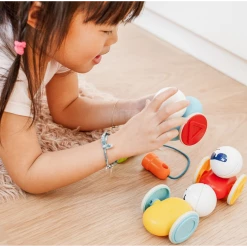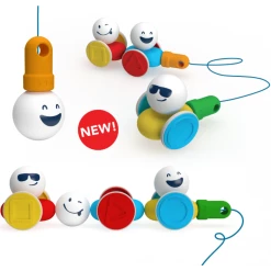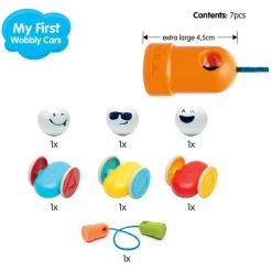 Go on an exciting, wobbly adventure with these magnetic fun-moving cars! Create your own Wobbly train and pull it along. Mix your cars and metal balls to create different wobbly combinations or use the pull rope as a fishing rod.