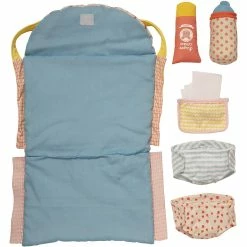 Kids learn a lot through imaginative play, and your little one will love the nurturing aspect of changing their baby dolls with our Baby Doll Diaper Bag/Changing Mat for 9″ to 16″ dolls. Durably constructed with surface washable fabrics, the pretend 11-piece soft diaper changing set includes 1-diaper bag that converts into a changing mat, 1-5″ magnetic bottle, 1-tube of pretend organic diaper cream, 1-wipe pouch, 5-wipes, 2-soft fabric diapers with adjustable hook and loop closures.