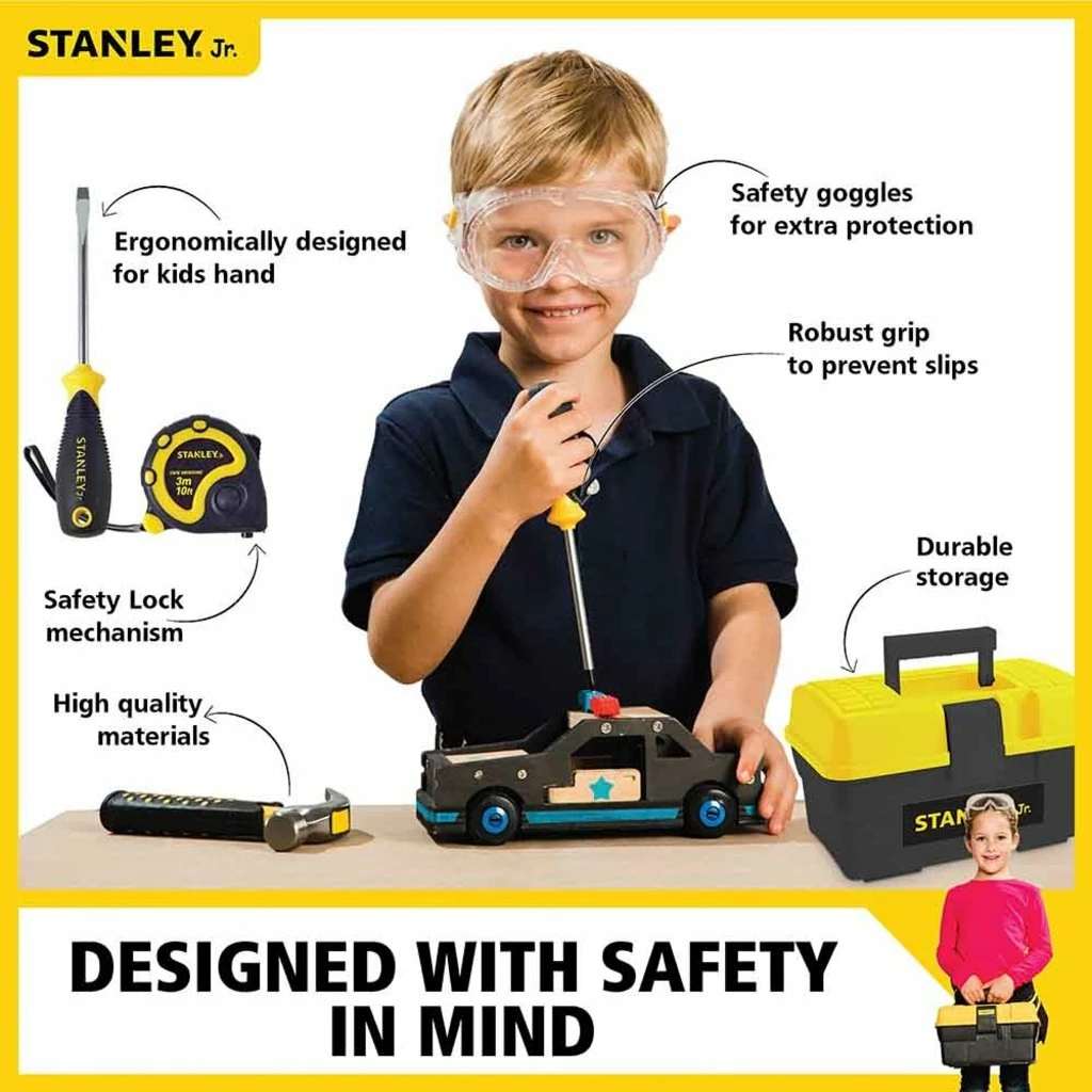 - Ergonomically fitted for smaller hands, work alongside your child while they experience the thrills of working with tools, from the brand name you know and love, Stanley.