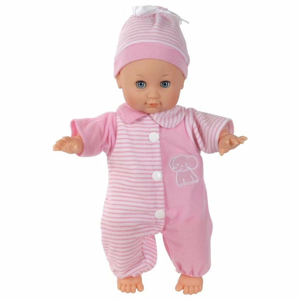 - Children will love this soft, cuddly, 12-inch baby doll, complete with two outfits and toy elephant to snuggle.