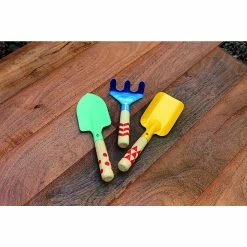 Children will love to work with you in the garden digging, planting, and caring for flowers and veggies with their own garden tools. This 3-piece Kids’ Garden Tools Set by Toysmithยฎ is sized right for children’s hands. The Kids’ Garden Tools Set includes a trowel, a rake and a shovel, with each tool measuring 9 inches long. With this set of garden tools, kids can help around the garden, bond with their parents, and have some quality time playing and working outside!