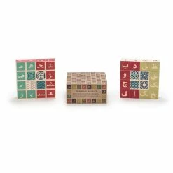 - Each block measures 2 x 2 x 2 inches, made from sustainable Midwestern basswood and printed using child-safe, non-toxic inks.