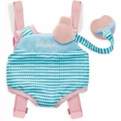 Take your baby on the go! The Travel Time Carrier Set keeps your doll near mommy or daddy in a hands-free baby-doll carrier. This carrier fits any 10 to 14 inch doll and includes aย clip-on pacifier and Velcro-like closures.